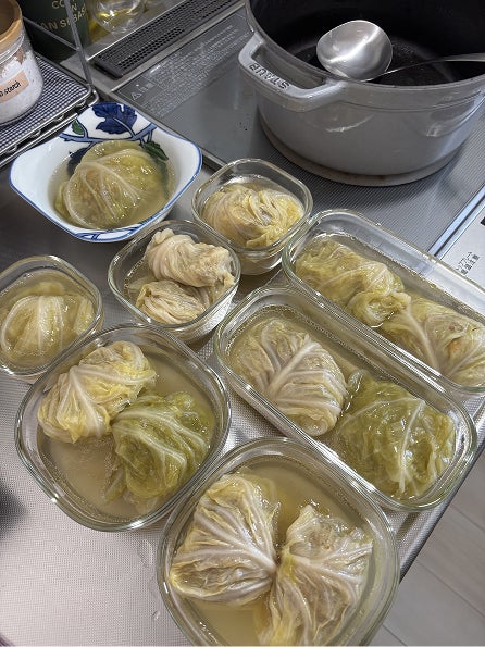 1歳7ヶ月になる双子の息子が食べる食事を、毎週末、作り置きしています。写真はロールキャベツですが、他にもチャーハン、チキンライス、豆腐ハンバーグ等。双子育児は大変ですが、妻と育児をシェアしながら、息子たちの成長を楽しんでいます。息子たちのおかげて、包丁さばきが上達しました(笑)