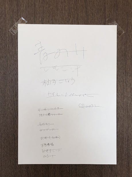 お買い物リストは壁に貼った紙で共有