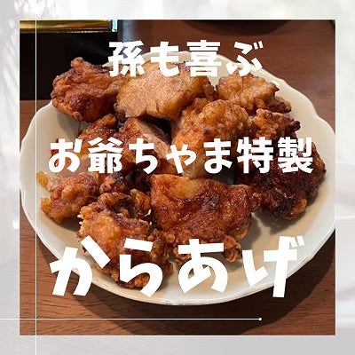 お爺ちゃまが作る特製からあげ。家族みんな大好き。孫たちが美味しい!美味しい!と喜ぶ姿を見て、お爺ちゃまも嬉しそう。